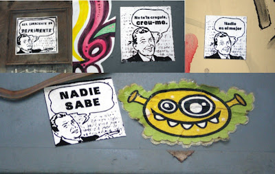 Cada artista tiene su "sticker", unos hacen comics, animales, dibujos infantiles, sobre blondas de pasteles, la Olivia de popeye, ó Mr. Lost entre muchos otros. A traves de todos ellos mis paseos por la ciudad se convirtieron en un búsqueda que hizo los hizo más entretenidos y tambien divertidos, pues cada día encontraba uno diferente, cual era el ultimo que había creado Joana o como estaría vestida Olivia y cual sería el nuevo "pastel".