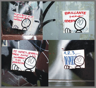 Durante varios años durante los paseos que suelo hacer por mi ciudad, Barcelona, empecé a fotografiar los stickers que varios artistas iban pegando por puertas, paredes u otros lugares de la ciudad.