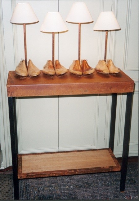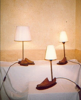 Mis primeras lámparas fueron las que empecé haciendo con trozos de cajones, con hormas de zapatos, con patas de armario o con cosas que encontraba por los encantes o por la calle cuando en Barcelona la busqueda de muebles y trastos viejos era como una expedición a los desconocido. Siempre se encontraban muebles u otros objetos que la gente dejaba en la calle y que muchas veces con un pequeño arreglo eran reutilizables.