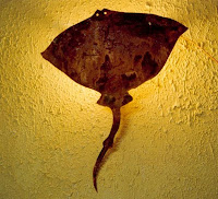 Me gusta trabajar con hierro y por eso muchos pies de lámparas y alguna pantalla son de hierro oxidado