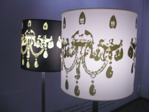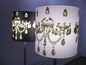 Estas fueron las primeras que diseñe. Fueron estampadas sobre seda y eran preciosas pues ademas de la calidez que daban encendidas, cuando estaban apagadas tenian el brillo de la seda que las hacia más bonitas.