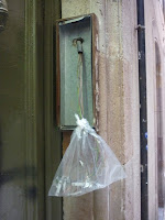 Si continuamos paseando, nos encontramos que en una travesia junto a la calle Rec, vemos que el "Santo" o "La Virgencita" se han ido, se los han llevado y en su lugar nos han dejado un envase de zumo, vacio por supuesto.