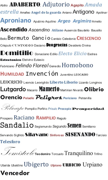 Otro de los motivos de muchas risas han sido los nombres de miles de personas a las que les han puesto algunos nombres que seguro que marcaron su vida y que además no pudieron ni protestar ni cambiar como se puede hacer hoy en día. Que haces si te ponen, Restituta, Amada Estrella, Deogracias o a los chicos Homobono, Peligros, Invención, Sandalio, Sisenando, Longinos, Medardo, Fosco, etc....?