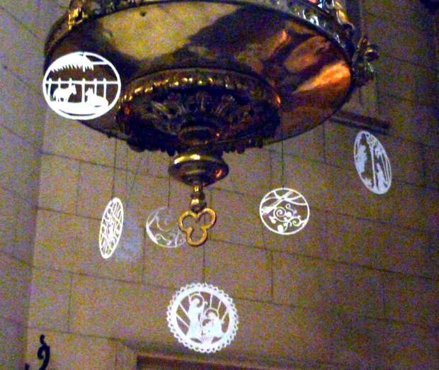 Todas las iglesias de la ciudad están decoradas de igual manera, todas tienen sobre el altar unas cintas de discos redondos blancos que caen abrazando el espacio y de sus lámparas cuelgan unos adornos redondos que tienen dibujos troquelados de la navidad.
