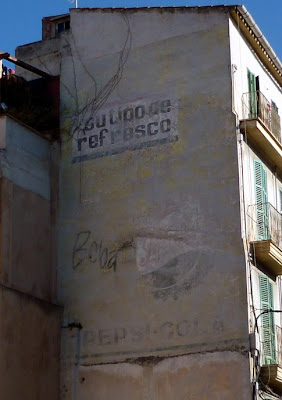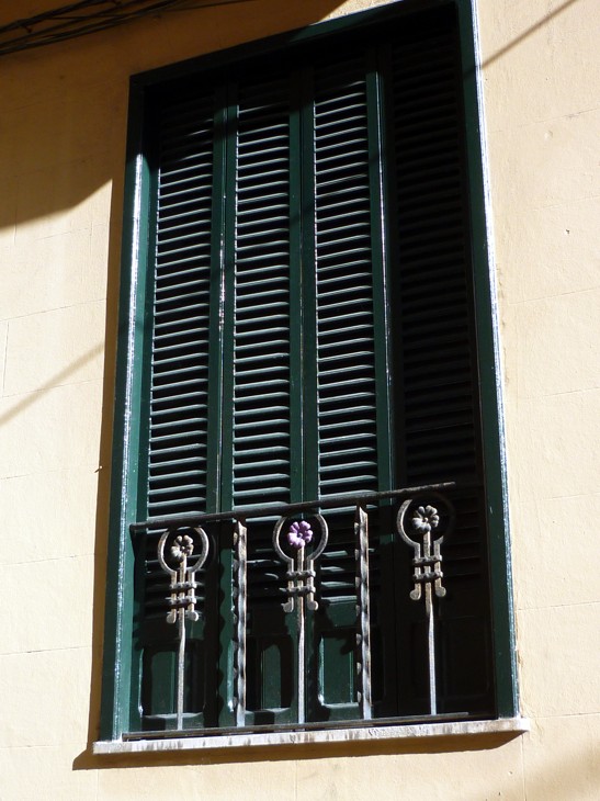 Balcones con sus persianas verdes y balaustradas, los anuncios que invitan a beber muy bien no sabes qué