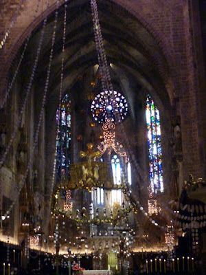Estuvimos en la catedral, queríamos ver el canto de la Sibil·la pero no fue posible como tampoco lo fue poder disfrutar de la capilla realizada por Barceló, pero si pudimos disfrutar de la luz que entraba por sus vidrieras, sus reflejos, sus colores, su decoración de Navidad.